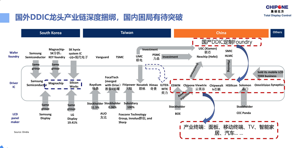 這很大程度上是因?yàn)閲?guó)產(chǎn)顯示驅(qū)動(dòng)芯片行業(yè)比較分散。在韓國(guó)和臺(tái)灣地區(qū),上下游廠商都進(jìn)行了深度綁定,而大陸地區(qū)仍缺乏這樣的深度綁定。