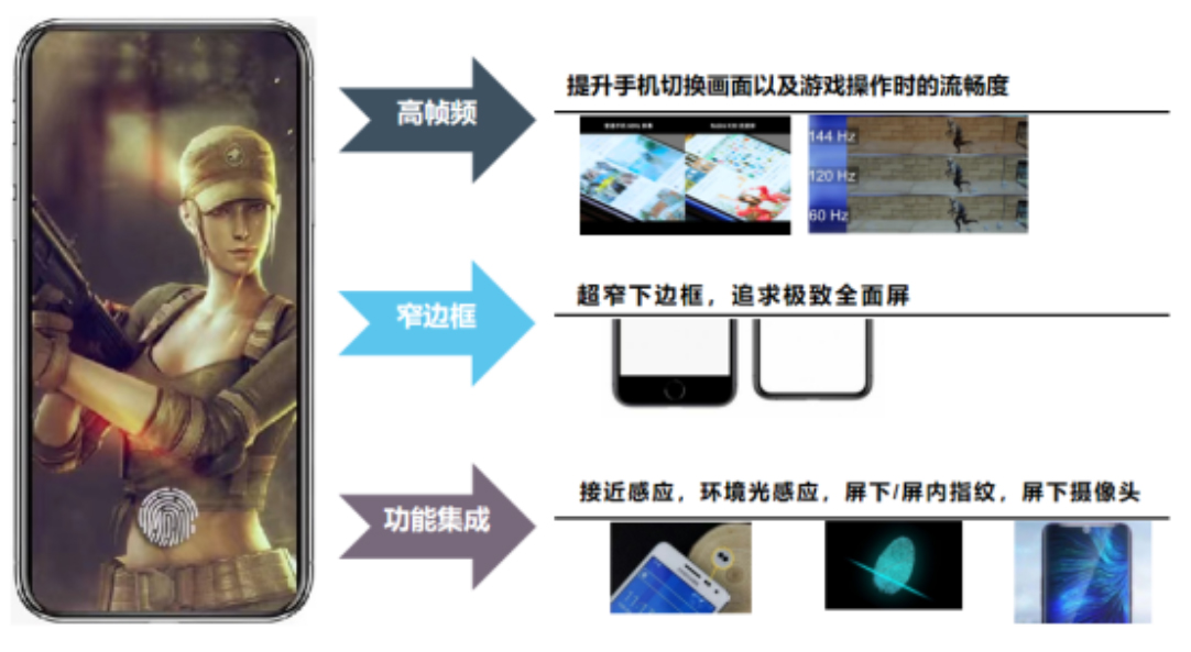 手機(jī)TDDI顯示屏技術(shù)發(fā)展趨勢高幀頻/窄邊框/功能集成度高。
