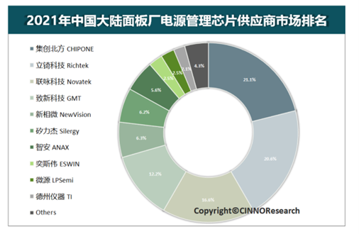 圖1:2021年中國大陸面板廠電源管理芯片供應(yīng)商市場排名,來源:CINNO Research